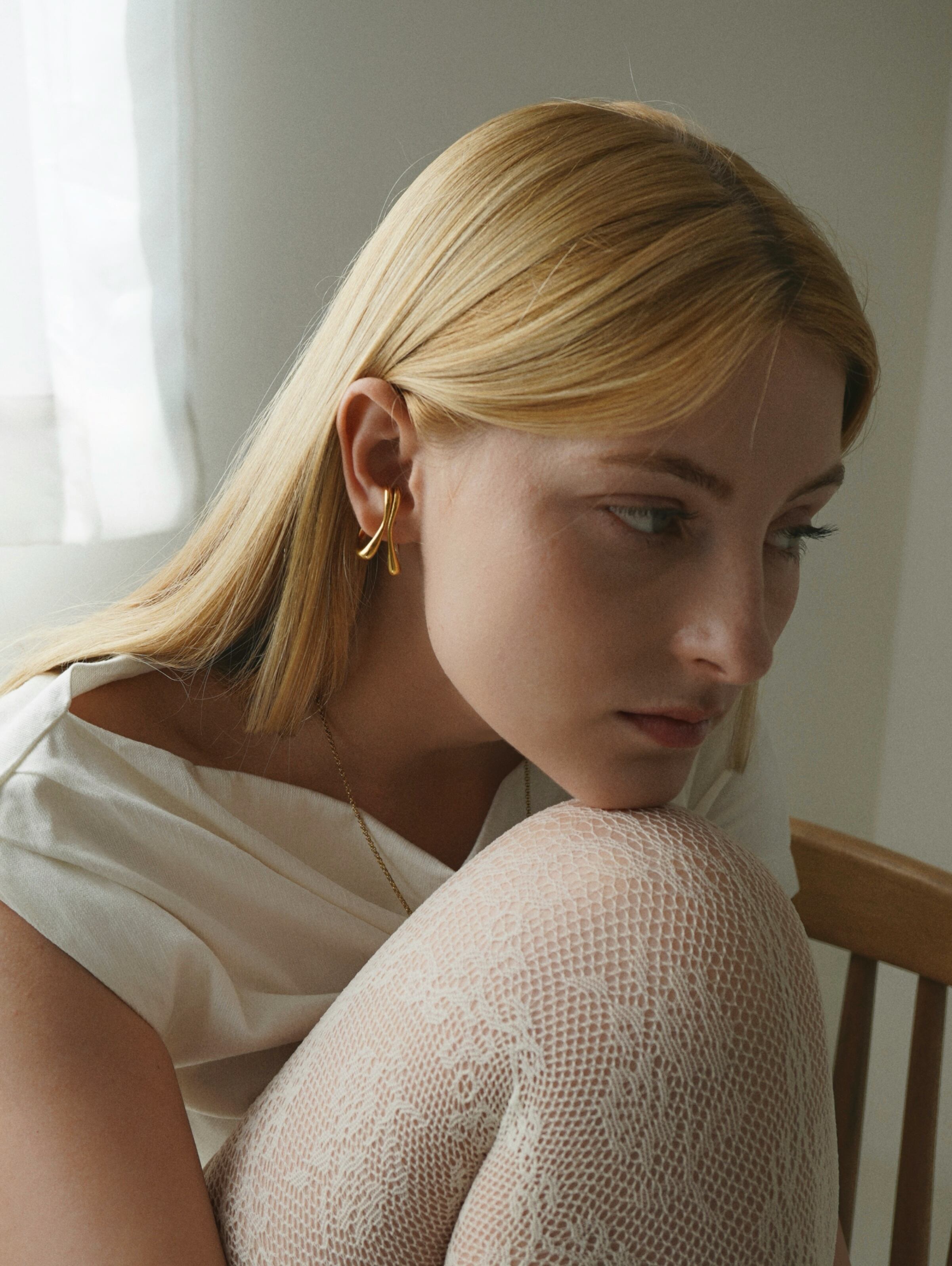 Its retro-inspired design is paired with an elegant finish, adding a soft touch of radiance to the ear.