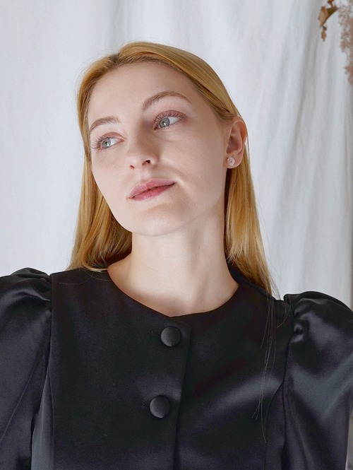 マットな質感のアクリル素材が、甘くなりすぎず、大人の可愛らしさを引き立てます。
