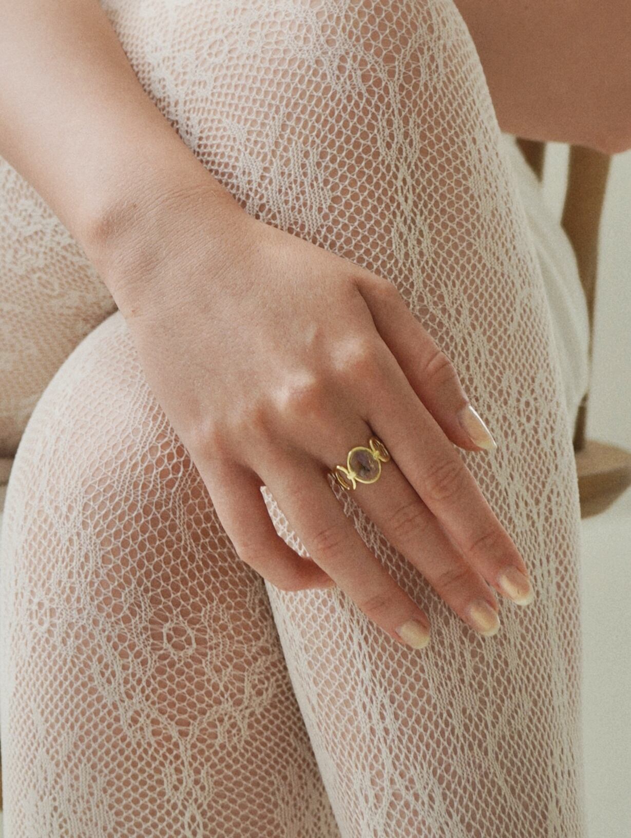 The sheer petals catch the light and gently add soft color to your hand.