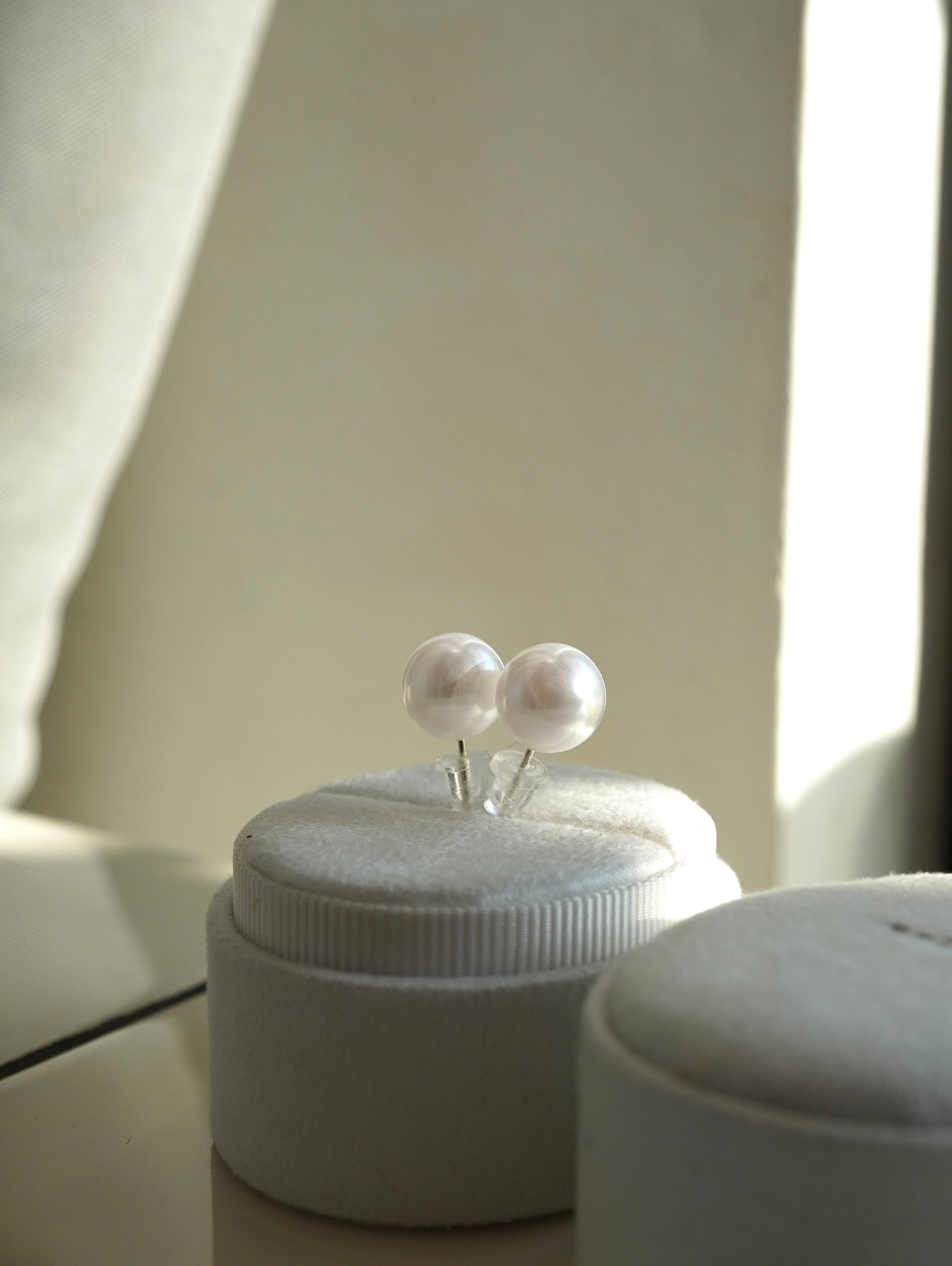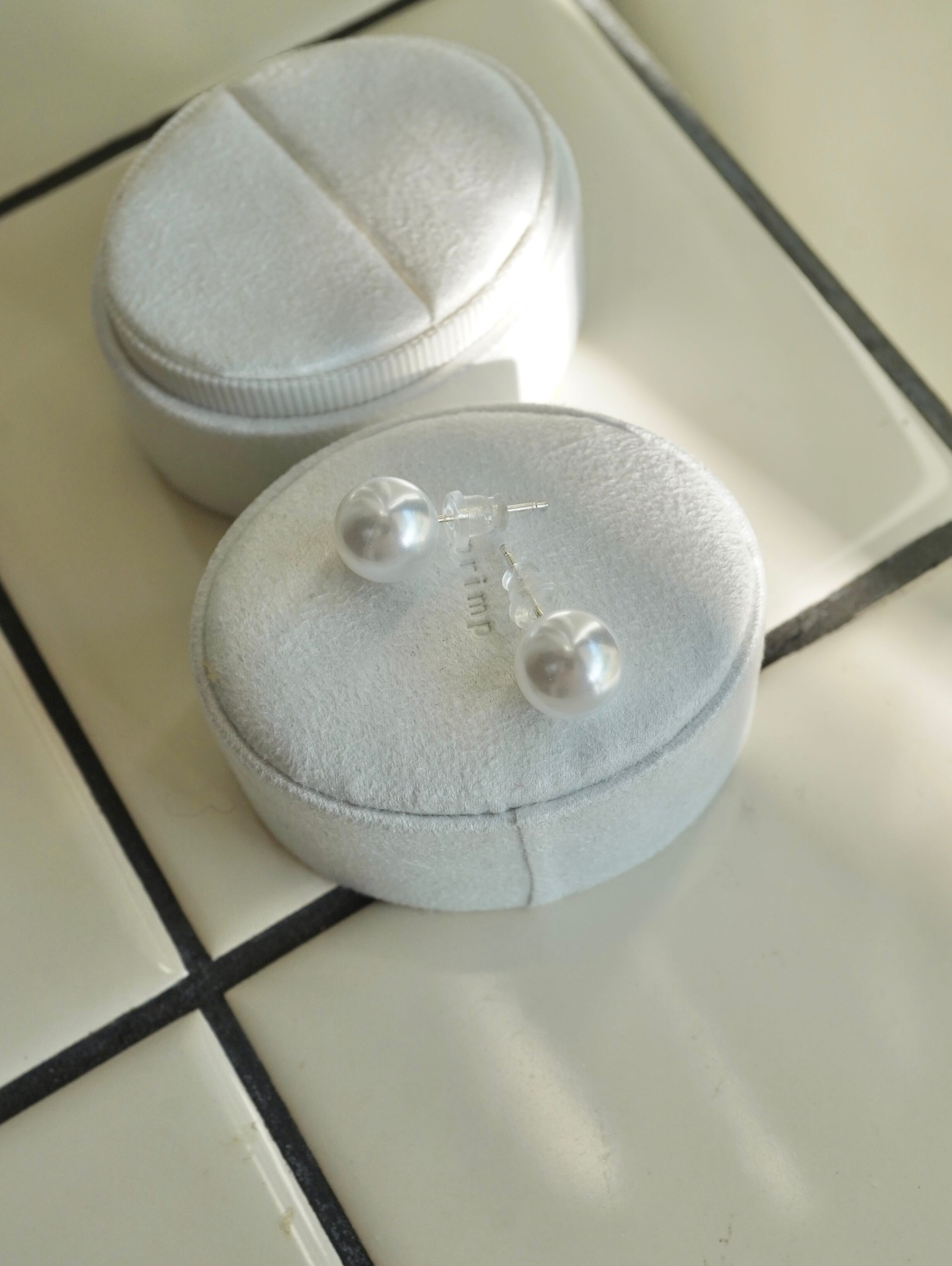 アクリルパールのシンプルピアス。シンプルでながら立体感のあるデザインが耳元にさりげないアクセントを加え、上品さを演出します。オケージョンシーンはもちろん、デイリースタイルにもぴったりなアイテムです。