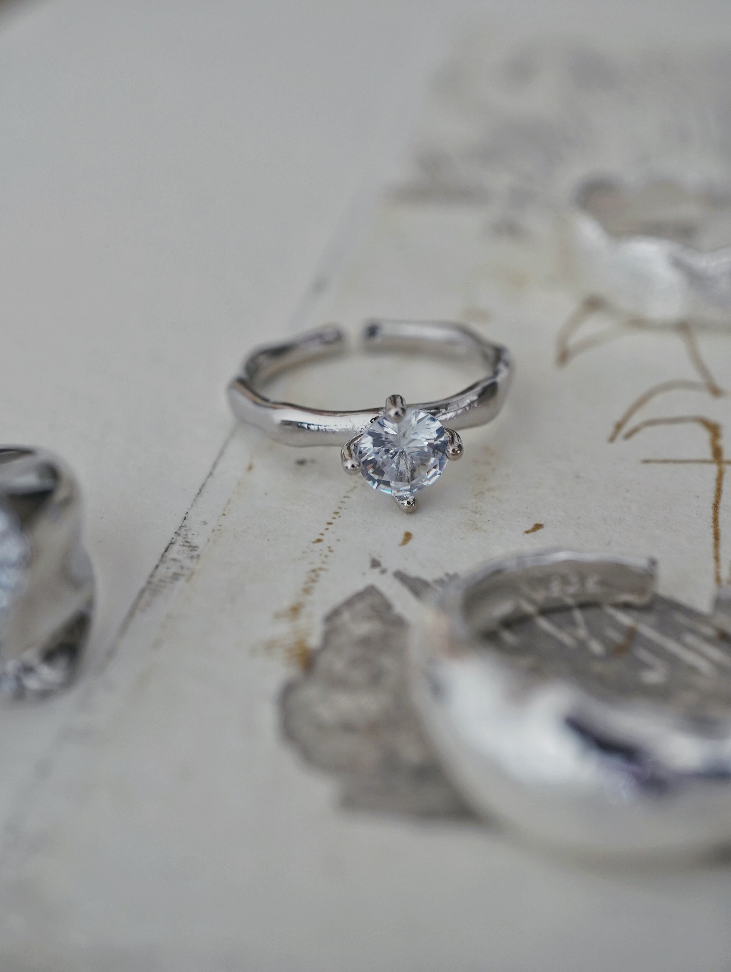 透明感のあるストーンが、手元に軽やかなきらめきを添えるリング。