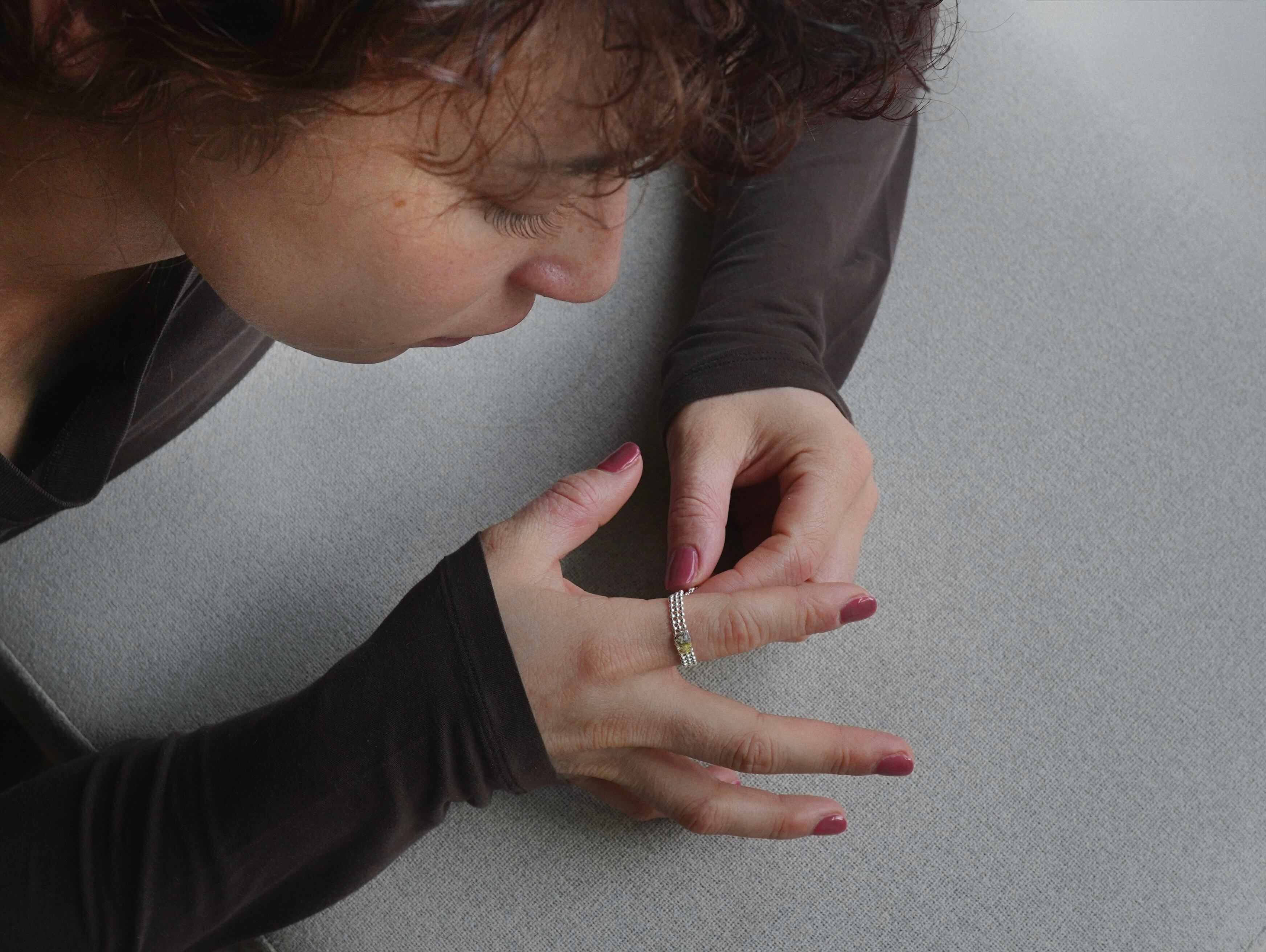 シリコンボールをスライドさせてサイズ調節ができるため指を選ばず着用できます。