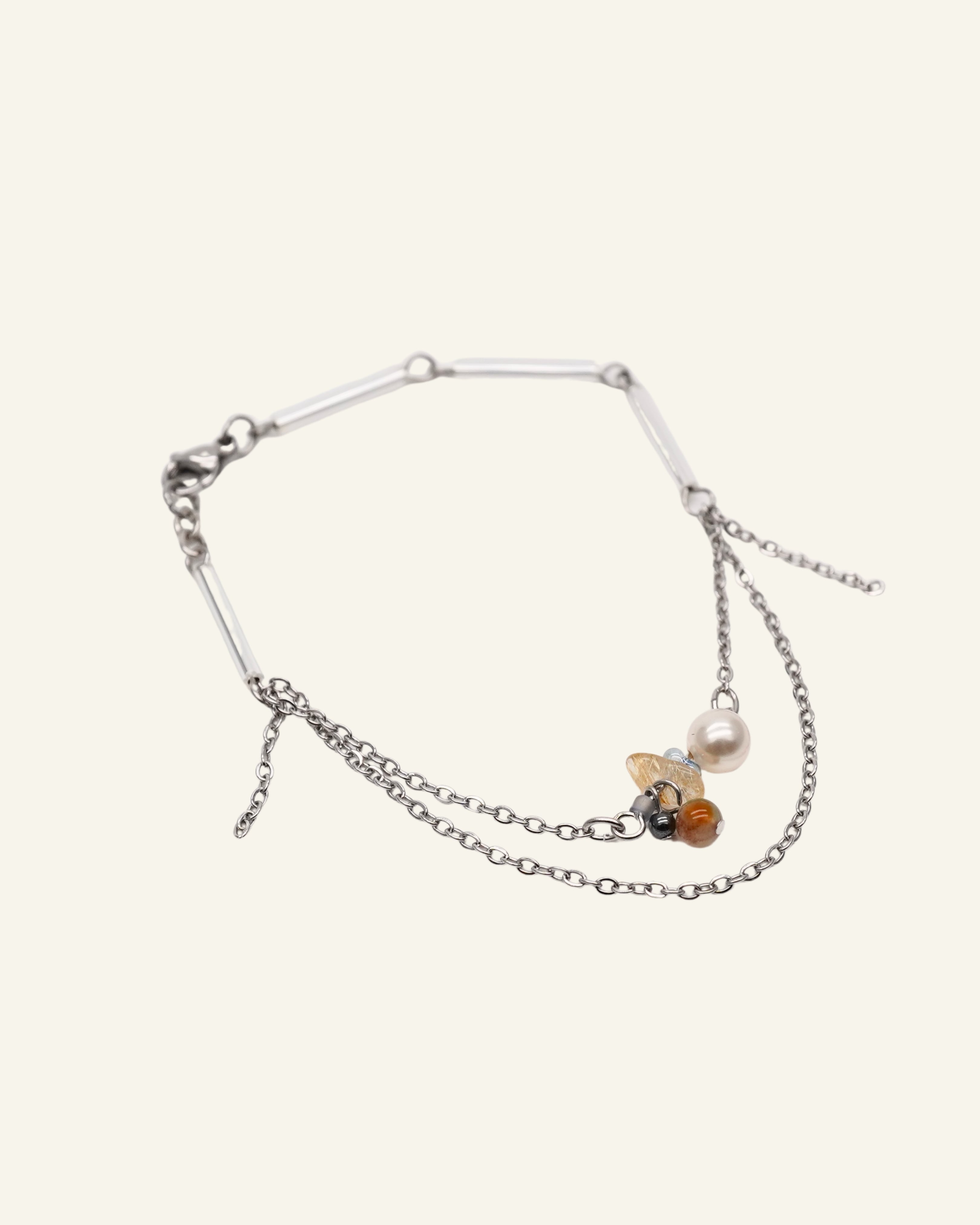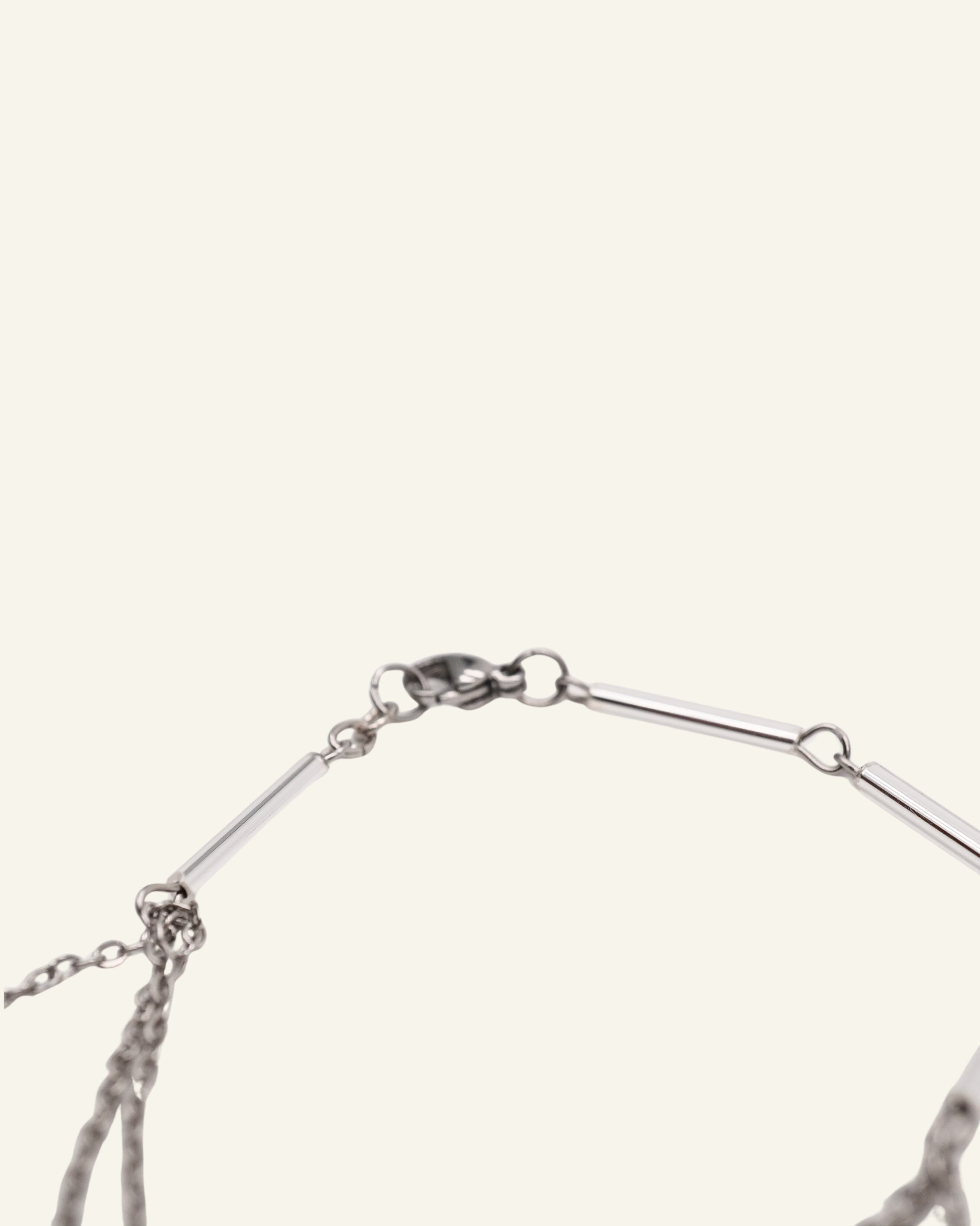 きっちりしすぎず、でもラフに寄りすぎない、その中間のデザインブレスレットです。