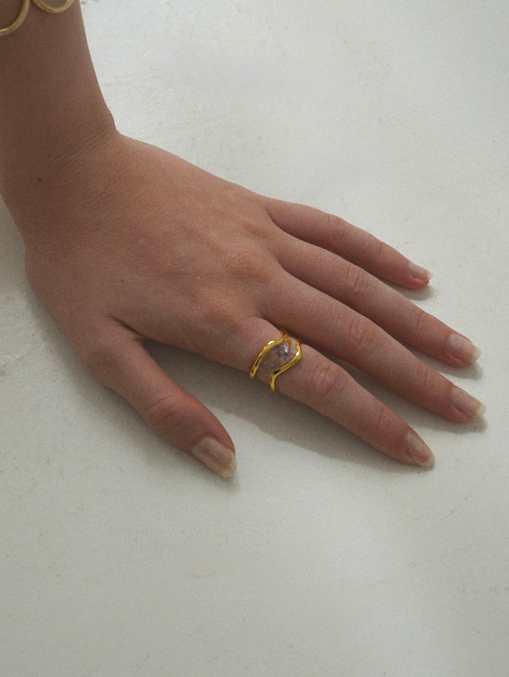 ダブルラインが柔らかな印象のリング。大ぶりながらシンプルで優しい曲線が魅力的で、どんなスタイリングにもぴったりです◎
