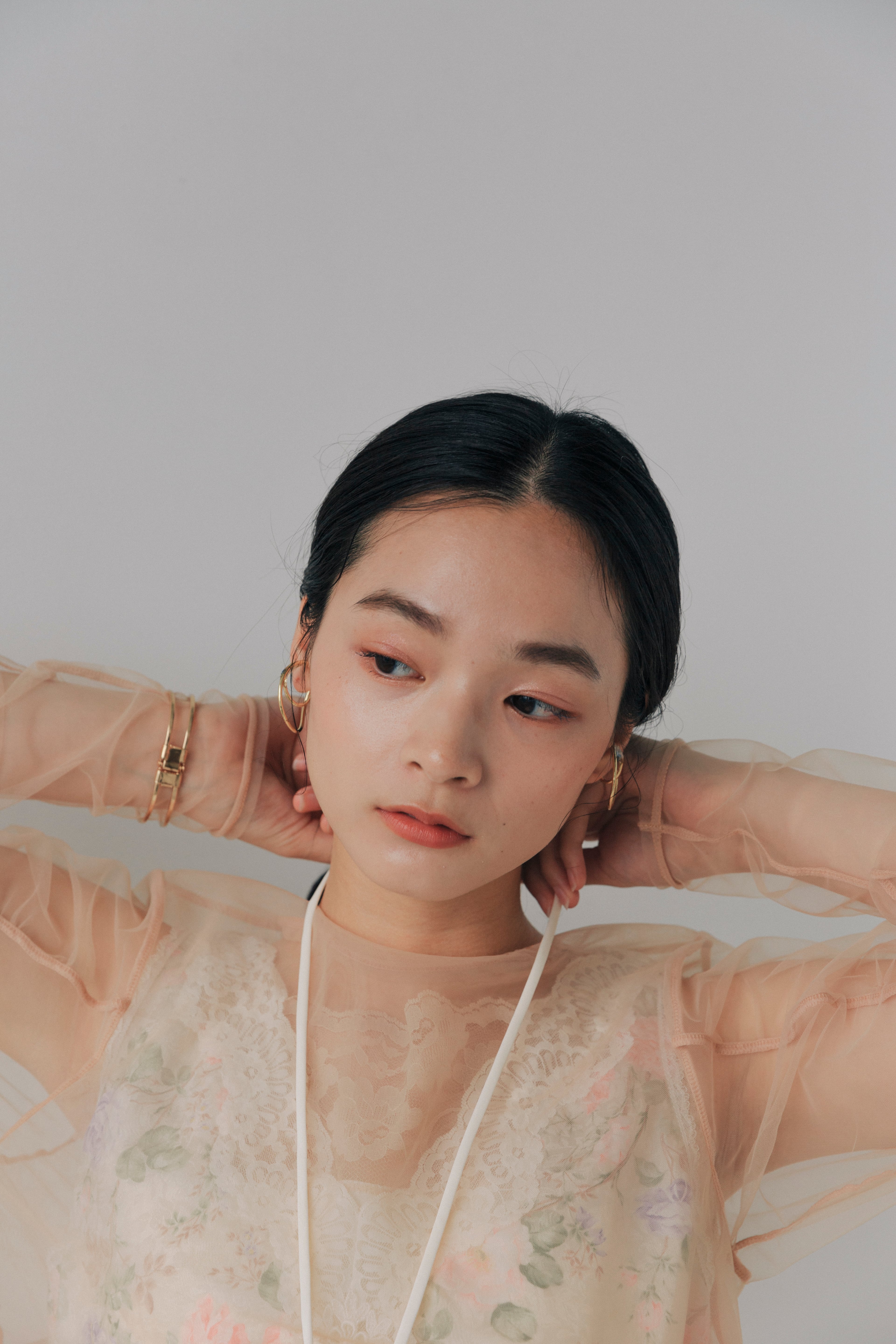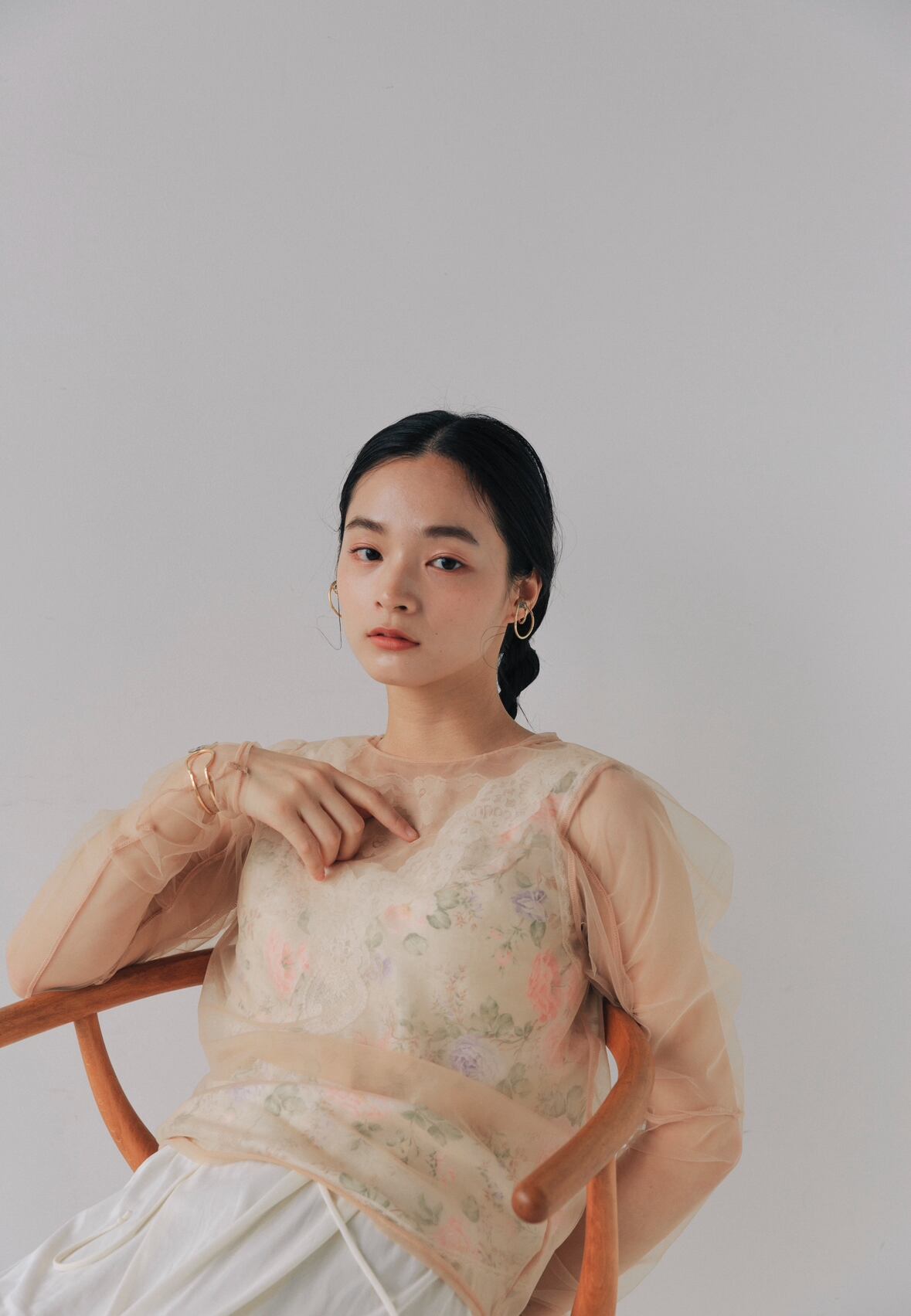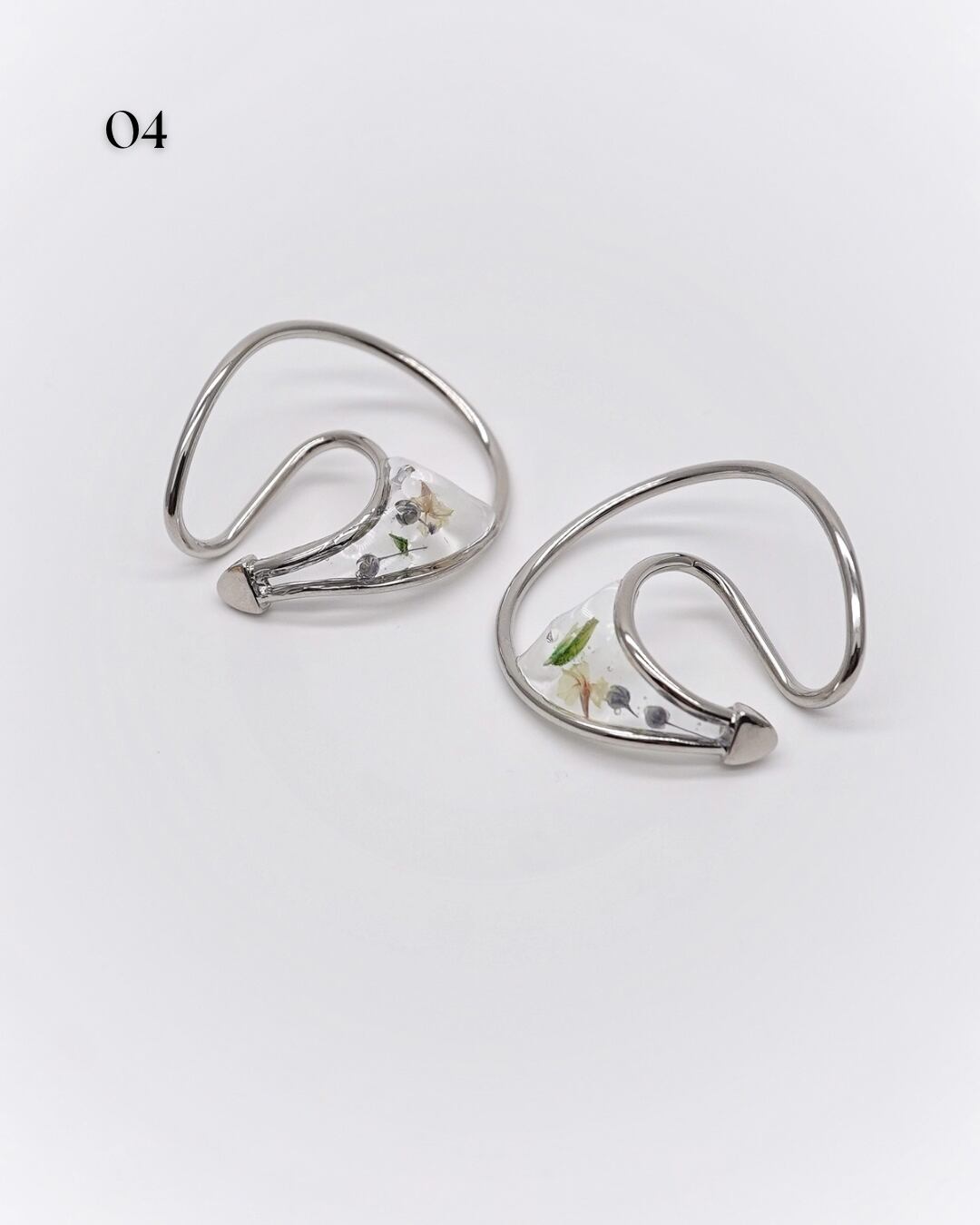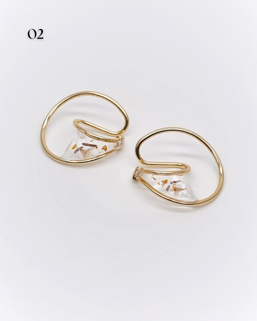 華やかさと抜け感を纏うフラワーフープイヤーカフ。ドライフラワーが中に閉じ込められたデザインで、耳元にさりげない彩りを添え、いつものコーディネートに自然なアクセントを加えます。