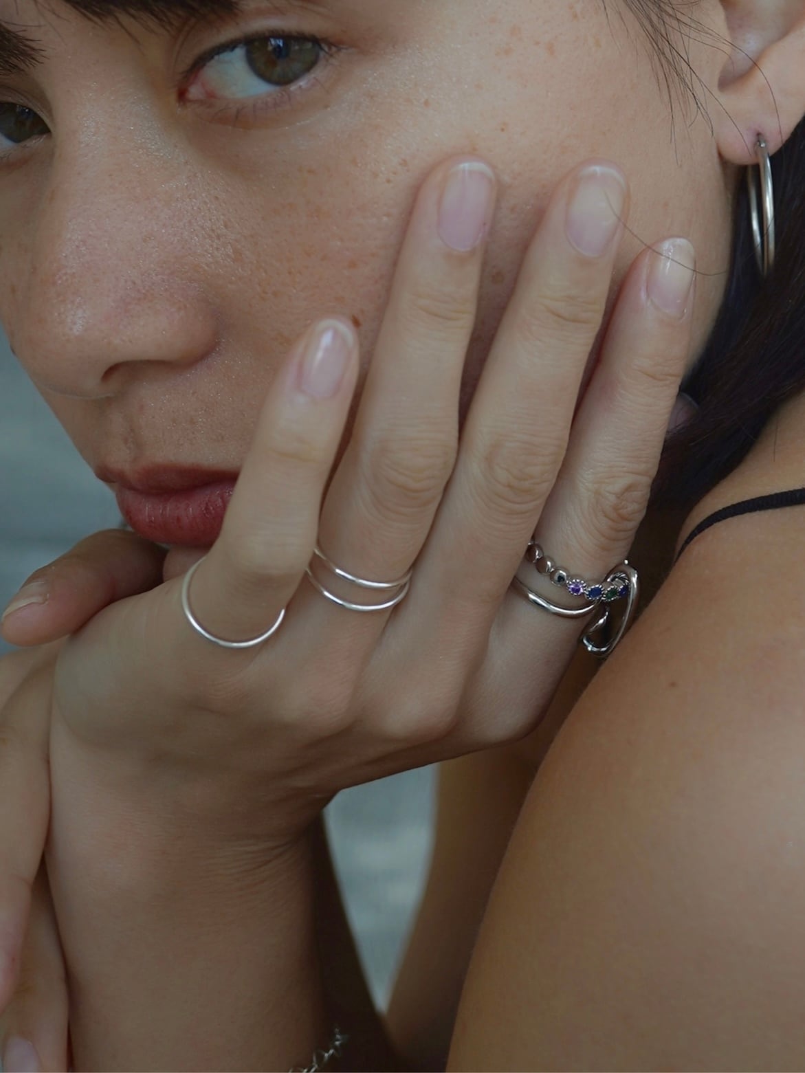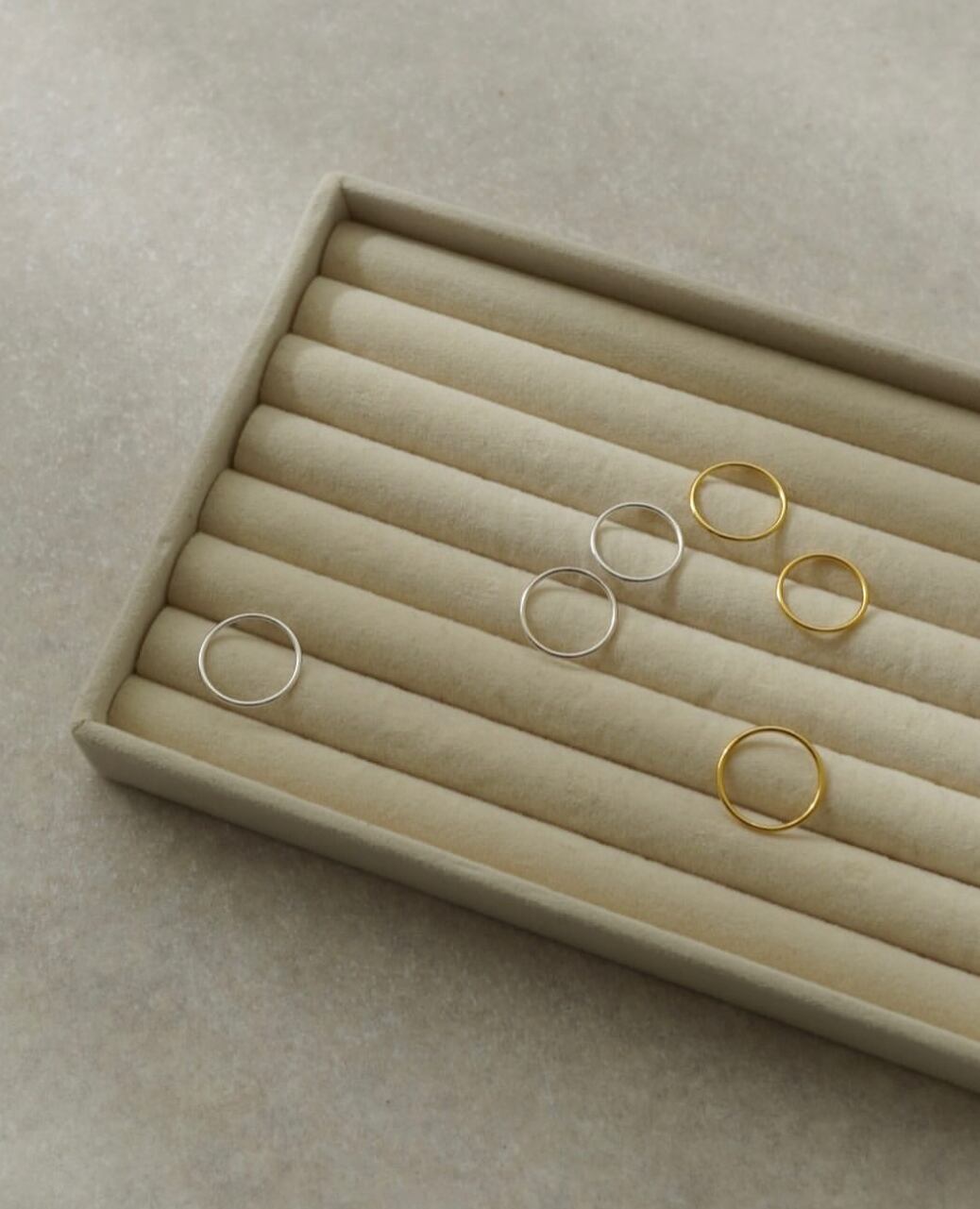 極細なシンプルリングが3組セットになったアイテムです。華奢なリングがさりげなくキラキラと輝き、指先を綺麗に魅せてくれます。単品使いはもちろん、重ね付けにもぴったりです。