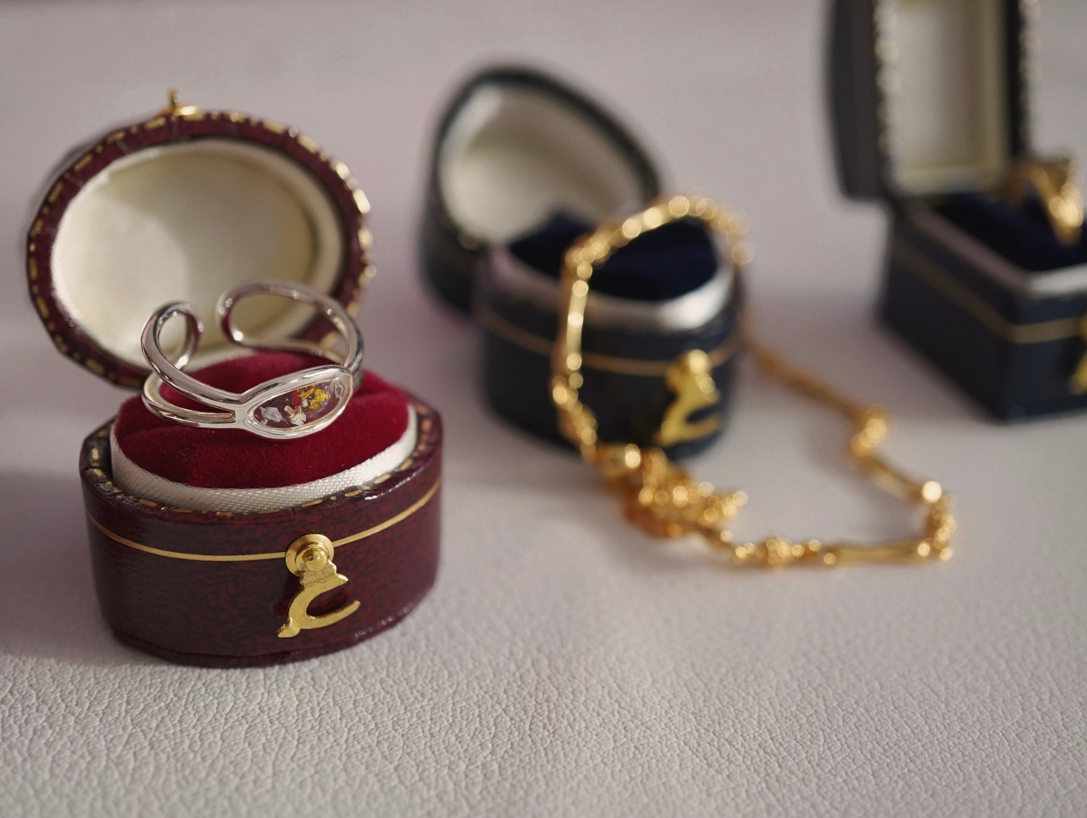 高級感のあるデザインで、大切なアクセサリーをしっかりと守りながらインテリアとしても楽しめるアイテムです。