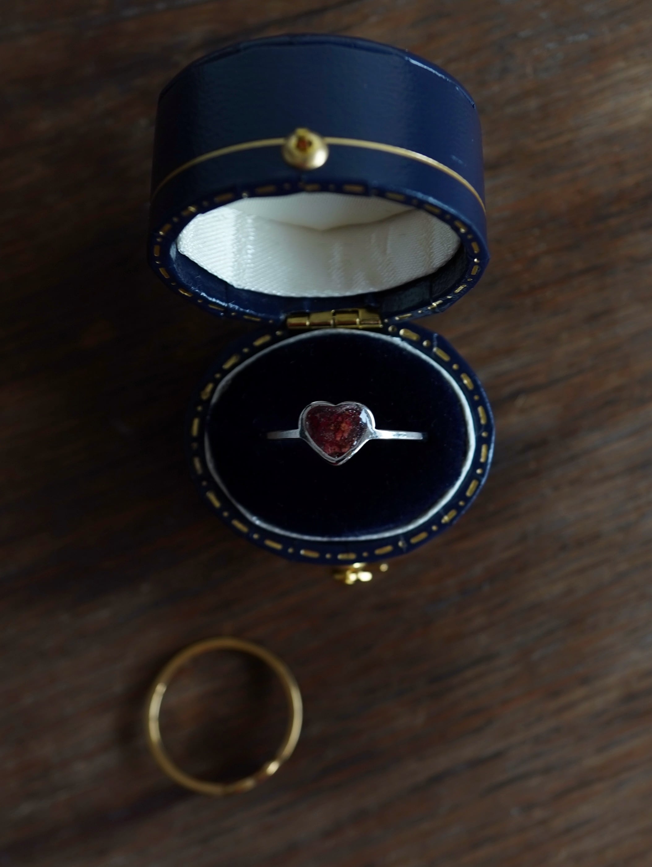 ブラックカラーレザー×スウェードのアンティーク調リングケース。
