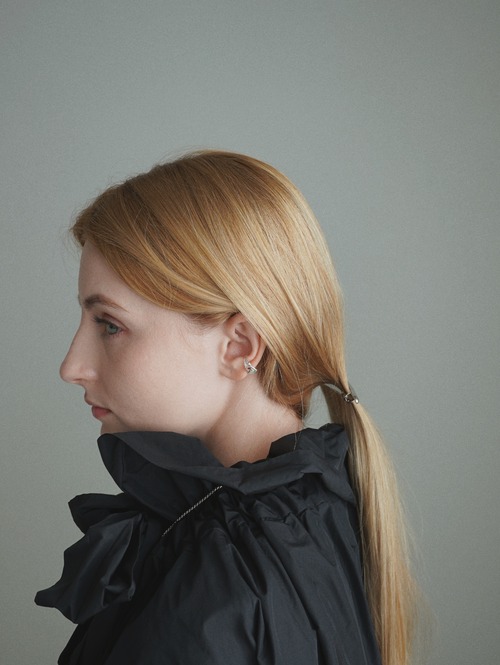 お花を閉じ込めたデザインが特徴のイヤーカフ。シャギーな質感が透明感を引き立て、耳元をさりげなく華やかに彩ります。シンプルでありながら個性的なアクセントとして、どんなスタイルにもマッチします。